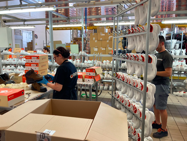 Im Zentrallager befinden sich mehrere zehntausend Paar Base Sicherheitsschuhe, die dank eines modernen Logistiksystems und erfahrener Mitarbeiter schnell für den Versand vorbereitet und zuverlässig an die Kunden ausgeliefert werden können.